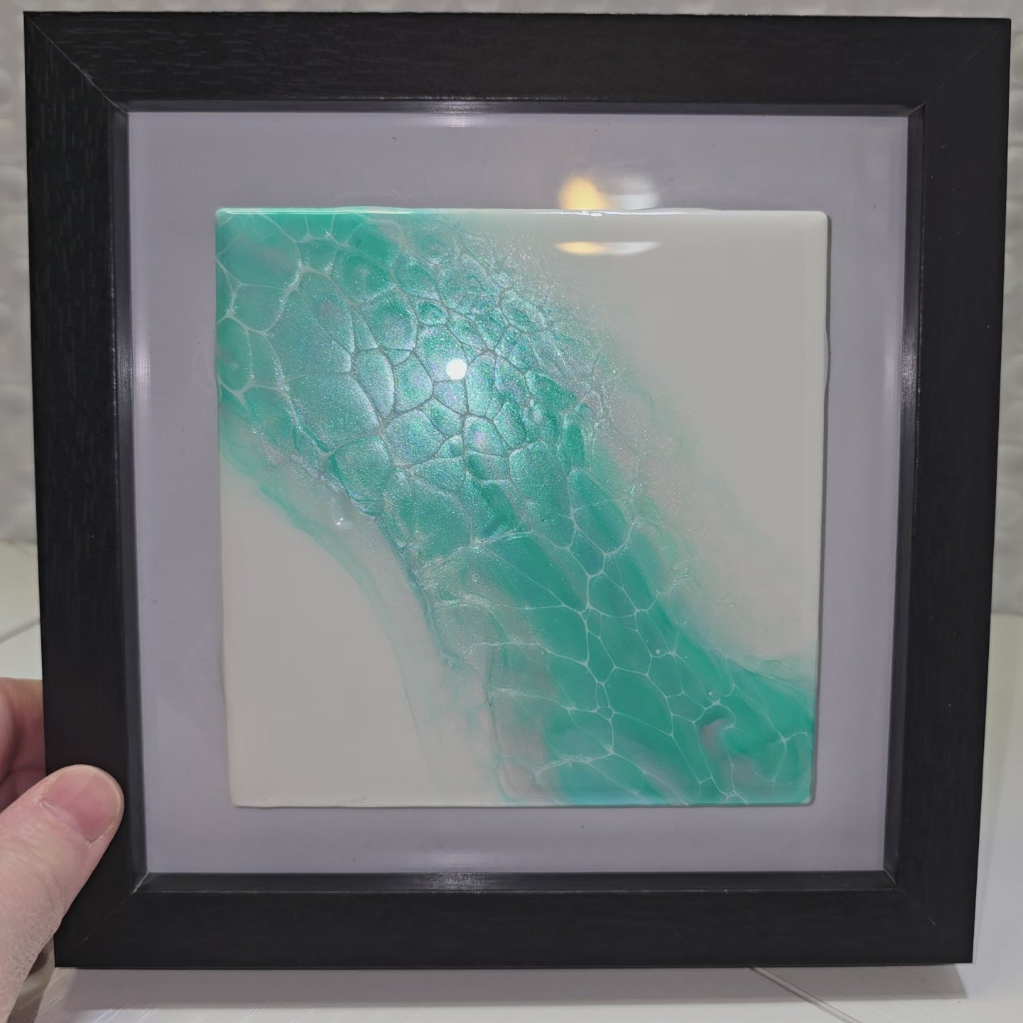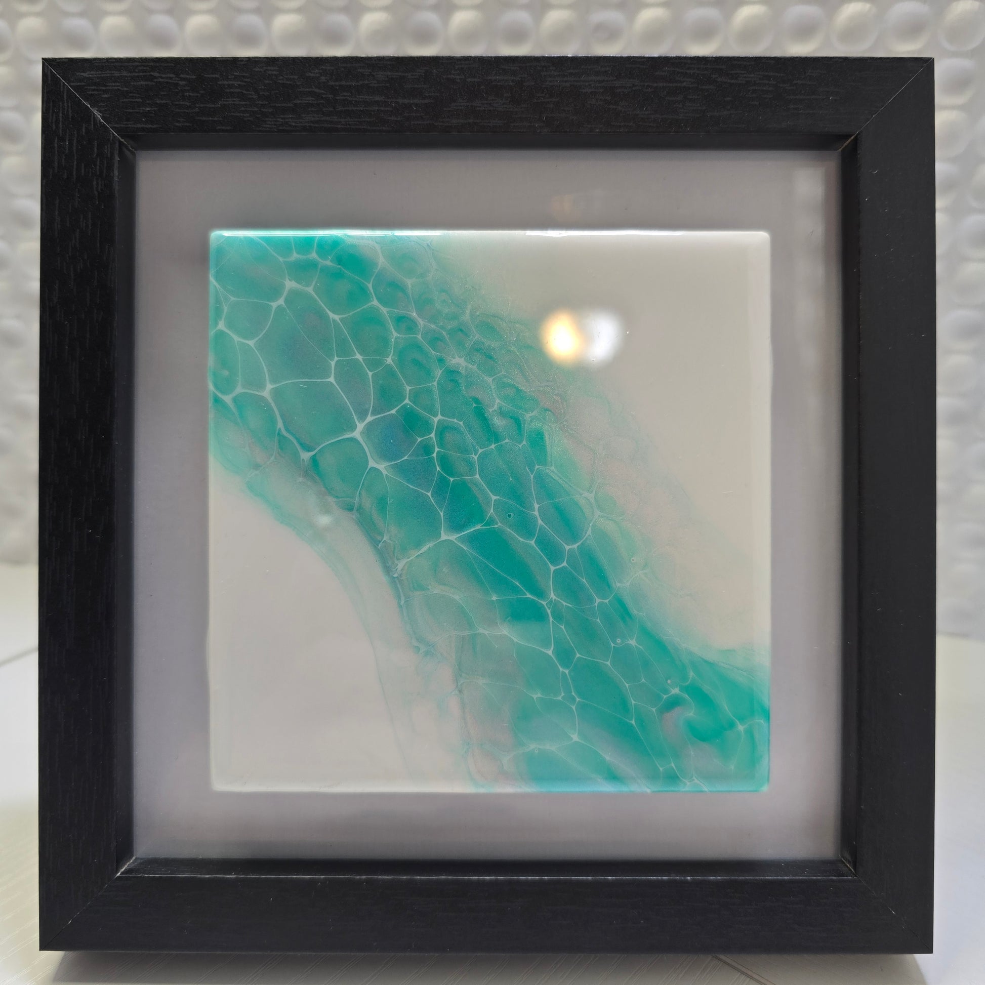 4x4 tiles set into a 6x6 frame. Minor imperfections due to being handmade may be present.